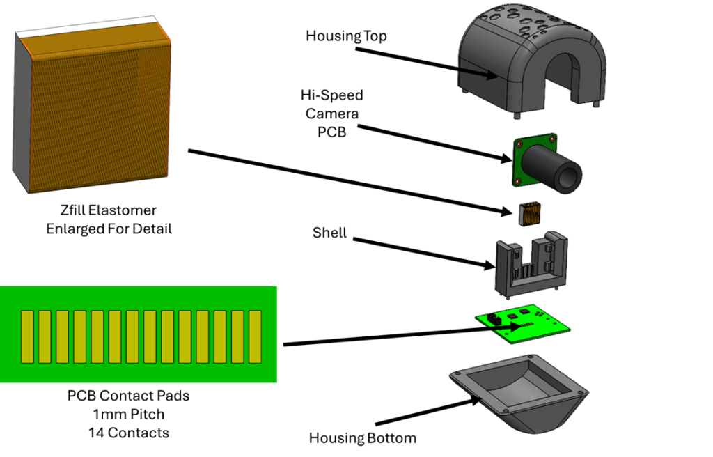 While this application included a high-speed camera module, the same 90-degree elastomeric interconnect approach is applicable to: